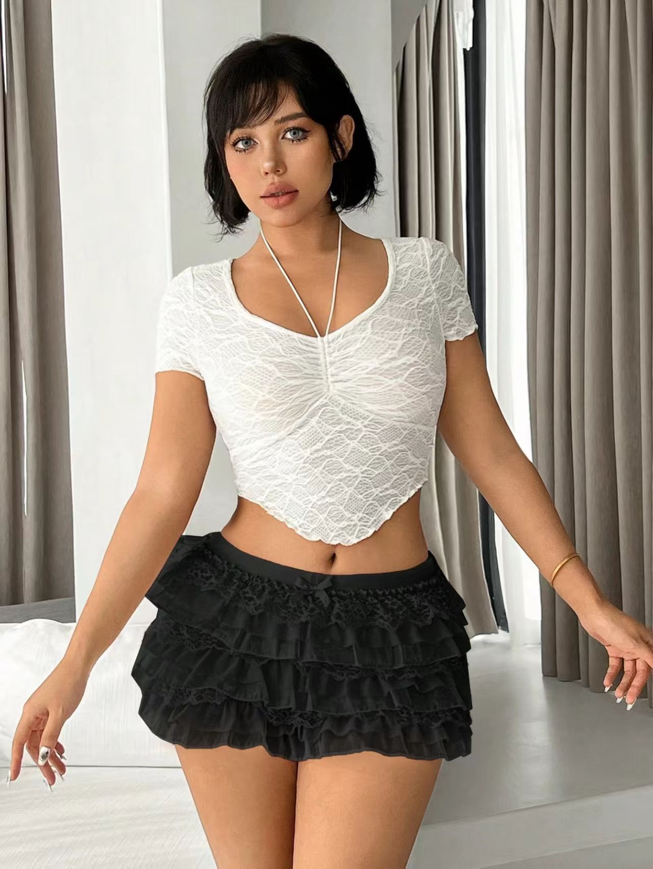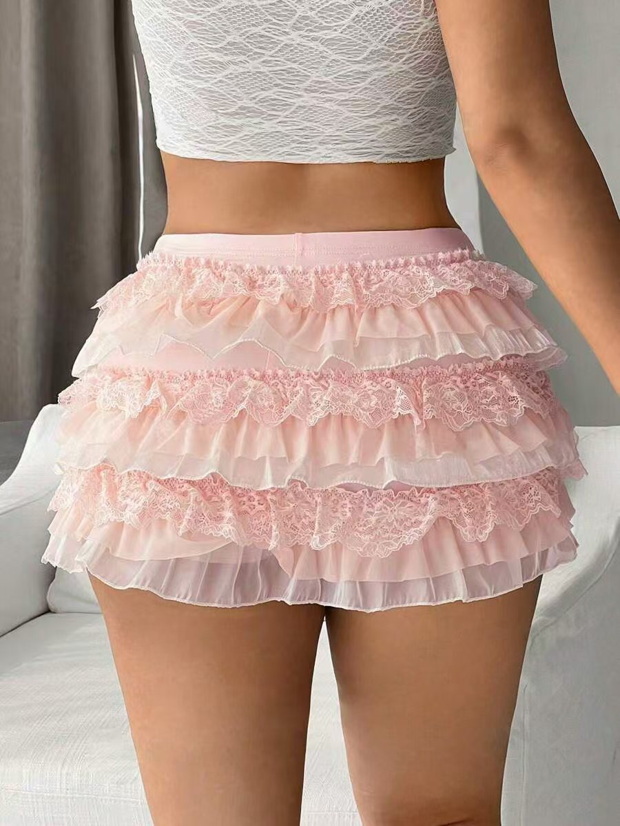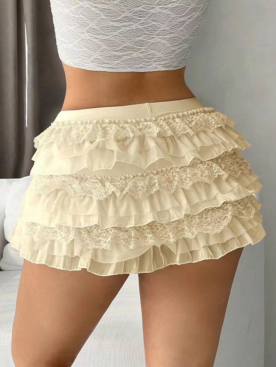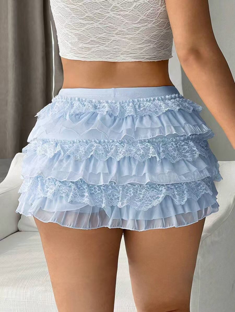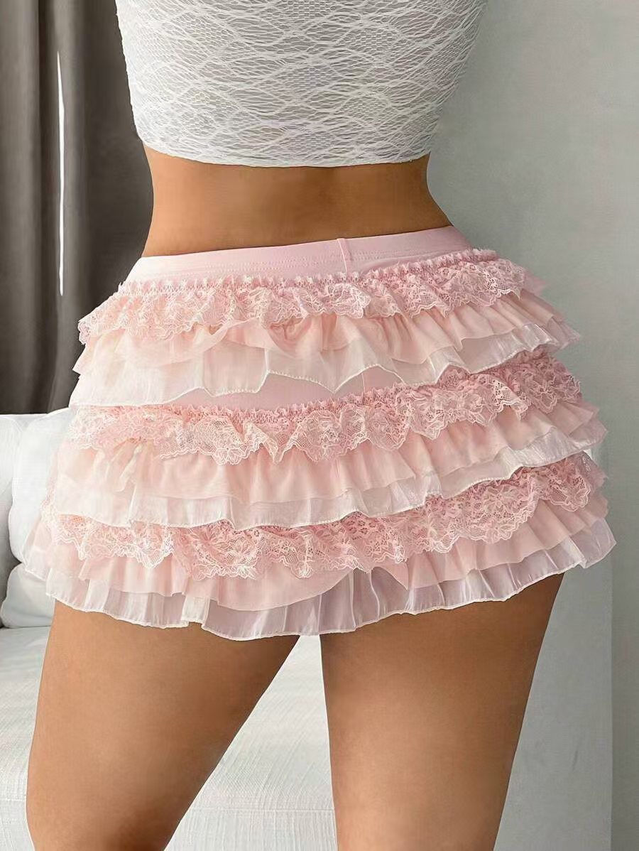 European And American Sexy Fashion Comfortable New Nine-layer Lace Bow Shorts